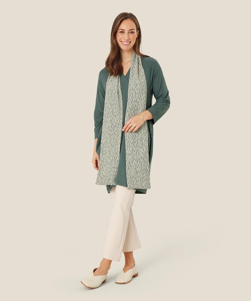 Låt den hänga löst över kroppen, eller knyt den lätt runt halsen för ett feminint och elegant uttryck.